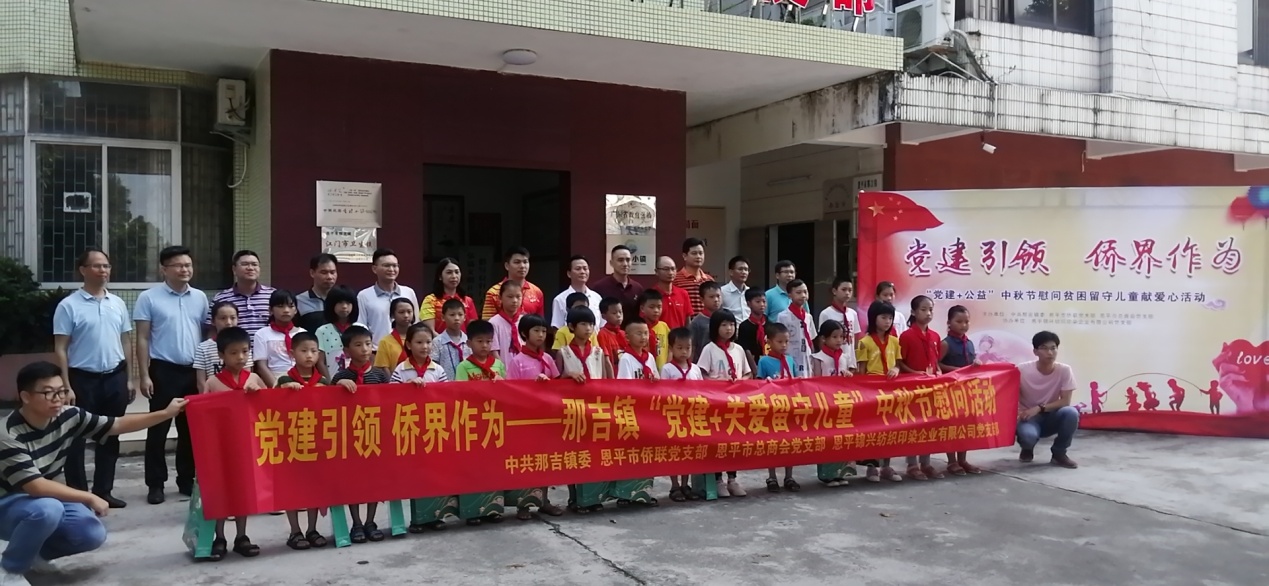 市侨联党支部、恩平市那吉镇委镇政府、市总商会党支部、锦兴纺织印染有限公司党支部联合开展中秋节慰问贫困学生和留守儿童活动