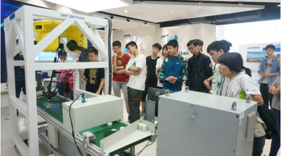在南方教育装备园,师生们参观了系列智能装备展厅,观看和听取了园区创新教育设备的研发、孵化以及发展一体式的现代教育装备“智能”产业链的宣传短片,深刻了解南方教育装备园创新科技的发展和成果。同时,园区工作人员向师生们逐一介绍和示范智能教育设备、智能教室等的操作使用,让同学们亲身体验了创新教育设备带来的高效和趣味,尤其是走进自动化智能实验室、与微型教育机械人对答交谈等环节更是深深吸引了师生们的关注和兴趣,让同学们感受到前沿科技的魅力。此外,师生们还观摩了珠西智谷智能装备制造厅,重点参观和了解创新机械核心技术的研发和原理,比如工业机械人、工艺品切割机、机床应用等,并就创新机械技术的操作和使用领域向工作人员提出疑问和交流。
